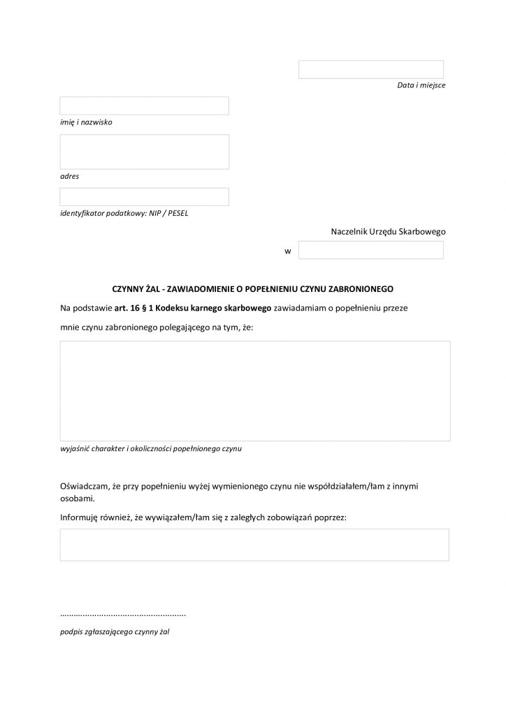Jeśli zapomniałeś o złożeniu deklaracji lub zapłaceniu podatku w terminie i obawiasz się konsekwencji karnoskarbowych możesz skorzystać z instytucji czynnego żalu.